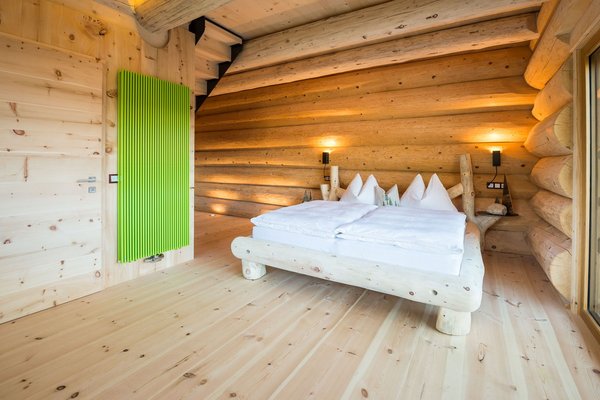 The 50 m² room with a natural wood floor extends over two floors, offering plenty of space and comfort. Downstairs, there is a bathroom and a double bed, while upstairs, depending on your needs, there are two to three single beds.